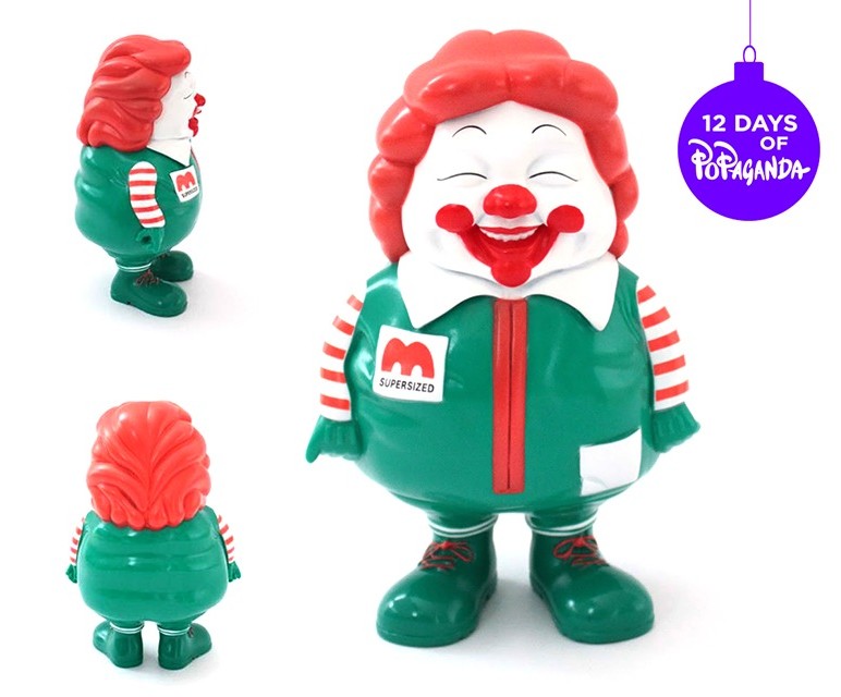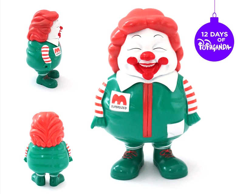 As part of Ron English and Popaganda‘s “Twelve Days of Xmas Madness” promotion, the guys proudly present their penultimate release… the MC Supersized (Green Ver) artist proofs! Standing at around 7″ of Japanese soft vinyl, the Secretbase produced figure has been painted in a Holiday inspired mix of holy green, berry red and snow white. Coming signed by Ron English, the figure can be found alongside a whole host of other toys, customs, original sketches, prints, and more in the Popaganda store right here, priced at just $135 each plus shipping…