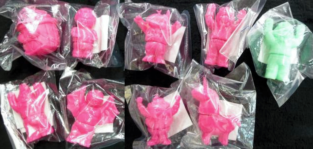 Jon Malmstedt over at Rampage Toys has just revealed that the latest batch of unpainted Gachapon Goblin micros are now available in the One-Up store! Featuring a total of 8 different designs coming from Rampage Toys, Joseph Harmon, Walter Parenton (IV – Bobbybeast creator) and Art Junkie, the little guys have been cast up in a super-squishy pink soft vinyl with a 1/10 green chase. Available to Japanese customers via a virtual gachapon machine for just 500yen a go, we’ll be keeping our fingers crossed that a run in this new vinyl will be available in the West soon…
