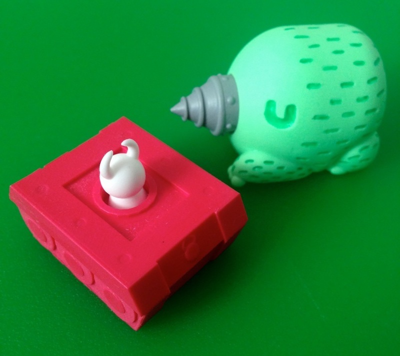 Well, after many fruitless nights in the studio throughout December, Peter finally found a way in which he could incorporate the extra design feature- by not only including a driver, but a full figure that could be completely removed from the vehicle as well! Going back to the tank track base’s digital sculpt, a horned Uamou logo was embossed on the front first, whilst a 3cm inlay and 1cm wide hole were added to the top for the tiny driver to sit. Joined by a micro sized Uamou digitally sculpted specifically for the release, the Mogu (mole) piece was then finally retooled by hand to accommodate the figure’s extra head (horn!) room… Due for release exclusively at Studio Uamou in the near future, a number of different runs have been planned, including a batch of one-offs, an “Apple” green and red, and our favourite, a keshi-gomu flesh! Each coming with a micro Uamou hand painted by Ayako herself, the little guys will be up for grabs at just 3,500yen a set. Keep an eye on the Studio Uamou IG feed here for news on the release soon…