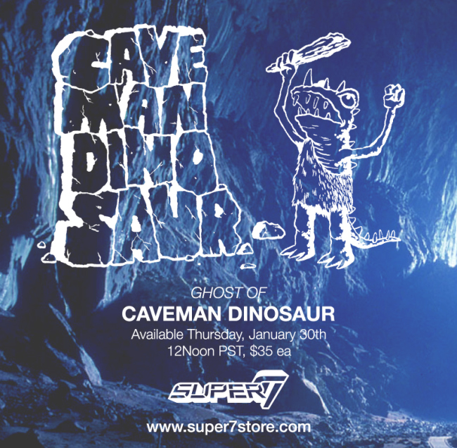 Super7 have just teased their latest incoming release, the Ghost of Caveman Dinosaur! Marking the first official release of Josh Herbolsheimer’s sofubi mini since it’s appearance in the S7 Lucky Bags and at SDCC last year, it would appear that the figure will be coming in some sort of clear vinyl judging by the “ghost” in the title, but we guess only time will tell! Touching down in the Super7 store on Thursday, January 30th at 12Noon PST, Caveman Dinosaur, in whatever form he appears, will be available for $35 plus shipping…