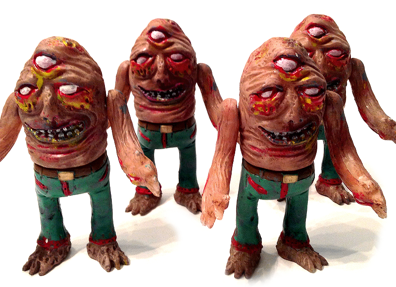 As if yesterday’s reveal of Kid Toxic and Oozy wasn’t enough, Blurble has just revealed that he’s teamed up with Weird Luke for a run of “Toxic” Gustos! Coming from the depths of the sewers, these blood stained, puss soaked miscreants have been painted up by Luke in a mix of flesh, brown and green acrylics, standing at around 5″ tall and coming with 2 points of neo-mag articulation. Limited to an edition of just 4 this time around, the Toxic Gustos will be up for grabs in the Blurble store this Wednesday, January 29th at 3pm PST for $60 plus shipping…