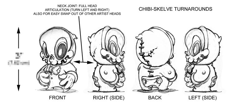 Tomenosuke have just announced that they will be once again teaming up with Circus Posterus for an ongoing series of Chibi sofubi! Due to feature designs from CP regulars including Kathy Olivas, Chris Ryniak and Amanda Louise Spade, the first to sculpt to be revealed has come in the form of Brandt Peters‘ Chibi-Skelve, currently undergoing the final stages of sculpting courtesy of Yohei Kaneko over at Mirock-Toy. News on the project is still pretty thin on the ground at the moment, so be sure to keep an eye on the Tomenosuke blog here for more info and sculpt reveals soon…