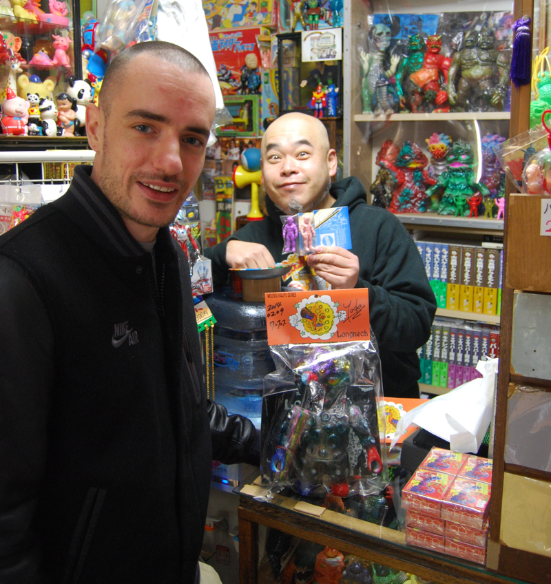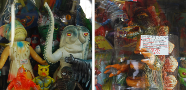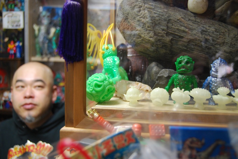 One of the many, many highlights of our trip over to Japan, we were lucky enough to make the pilgrimage over to the legendary Cosmo Knight Alpha shop on our last day. Run by Longneck’s Yoda-san, the modest sized space in Sakae-cho is home to easily one of the biggest collections of rare soft vinyl we’ve ever witnessed, featuring a staggering selection of vintage kaiju, original Cosmos gachapon figures, hard to find blow moulded minis, Bemon, and of course, THAT Longneck display window in the front. Anyone with even a slight interest in soft vinyl needs to visit this place at least once in their life- the following pictures after the drop simply do it no justice…