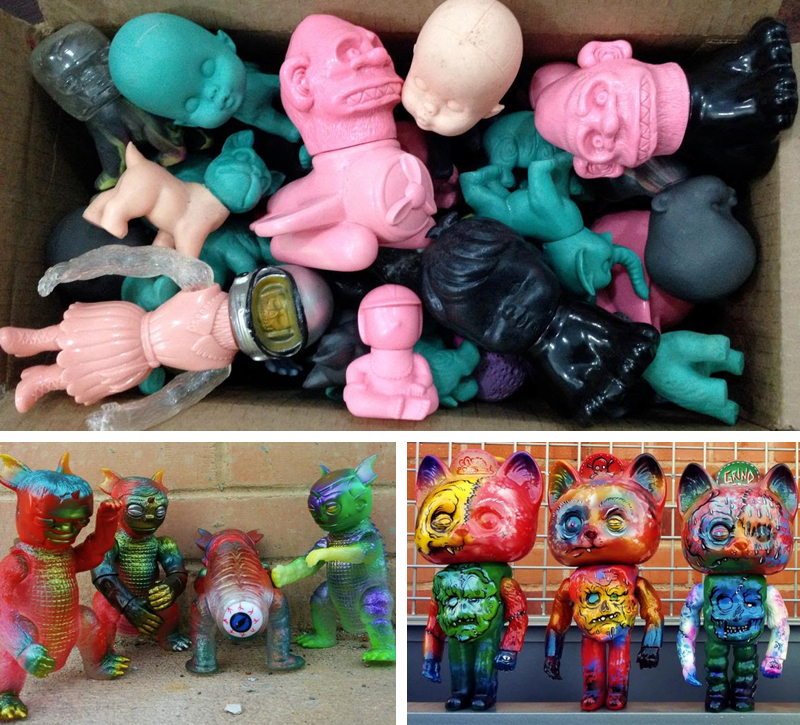 Hot off the heals of the FLV. Ver Brain Bug Boogie-Man preorder (find updated release details here), Lulubell Toys have revealed that a whole slew of new Grody Shogun figures will be touching down in-store this coming Monday, February 24th at Noon PST! Featuring a horde of blank, mixed part and painted mash-ups (pricing TBC), a painted run of clear cast Mad Mad Patchi Men from none other than Paul Kaiju ($60), and a batch of Necro Nekos painted by Evil Dave ($50), we suggest heading over to the store prompt to avoid disappointment as supplies are sure to be limited…