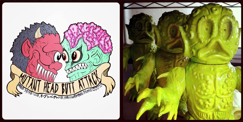Jon Malmstedt over at Rampage Studios is gearing up for what has got to be one of the biggest events in neo-kaiju this year, the MVH x SHB “Mutant Head Butt Attack” show! Whilst the pieces are still forthcoming at the moment, we’re told to expect various customs from both Mutant Vinyl Hardcore and Skull Head Butt (presumably utilising each other’s figures), as well as a few one offs and maybe a micro run or two from Jon himself. Running for three days at the Rampage Studios gallery space, starting March 14th (opening reception 7pm-late), be sure to keep a close eye on the Rampage IG feed here for reveals as we get closer to the event- starting with the pictured Meteor-X figures at some point tomorrow!