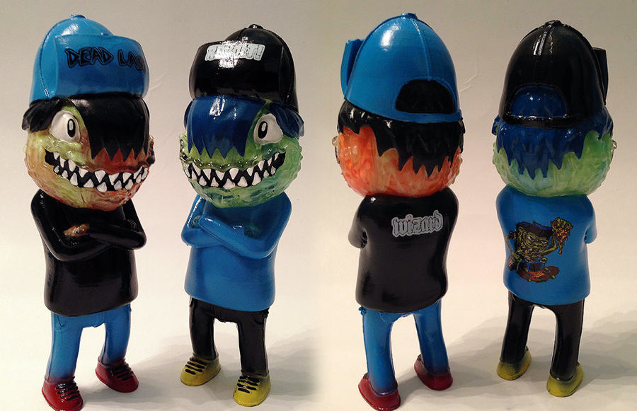 He’s been a while in coming, but the latest addition to the ever growing Blurble clan, Kid Toxic, is finally ready for his debut! Designed by Blurble, 3D sculpted by iamscumbag and produced by DuBose Art, the first release has been titled “Brothers of Metal”, featuring a run of just 2 one-off swirled resin casts (Simon and Taz) that have been meticulously hand painted and fitted with heavy metal decals by Blurble. Touching down in the Blurble store this Thursday, March 6th at 4pm PST, pricing on the duo is still to be confirmed…