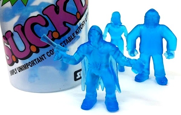 The S.U.C.K.L.E exclusives continue to roll out this week, with Tenacious Toys the latest to unveil their run, a gorgeous Clear “Raspberry” Blue! Featuring all 10 of the original Series 1 line-up from the Sucklord x DKE Toys including; Sucklord 17, Sucklord 66, Vectar, Sucklord 43, Necromancer, Another Bitch, Galactic Jerkbag, Gay Empire, Ira Tyranusberg and Ass Wipe, the M.U.S.C.L.E inspired figures have been produced in an injection moulded PVC, coming packed in an awesome retro shrink-wrapped plastic can. Limited to an edition of 80 sets, the figures can be found in the Tenacious Toys store right here for $19.95 plus shipping…
