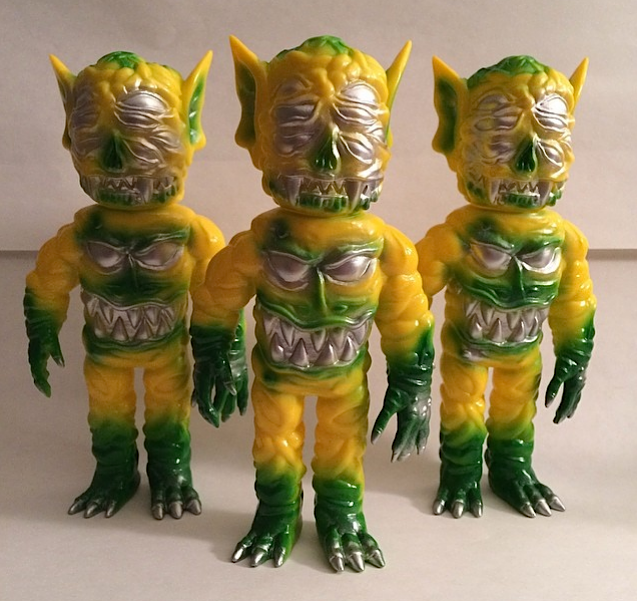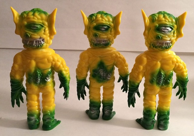 Teased here a couple of week back, Monster Worship has just revealed that the first painted run of Michael Skattum‘s Slime Bat will be going on sale in-store this Friday, March 7th at 9pm EST! Produced by Monster Worship, the 6″ tall, 2 part figure has been cast in a bright yellow soft vinyl this time around, with what MW describes as “bedazzled swamp thingy” style green and silver sprays. Due to come packed with an exclusive header designed by Skattum, the super limited figure has been priced at $45 plus shipping…