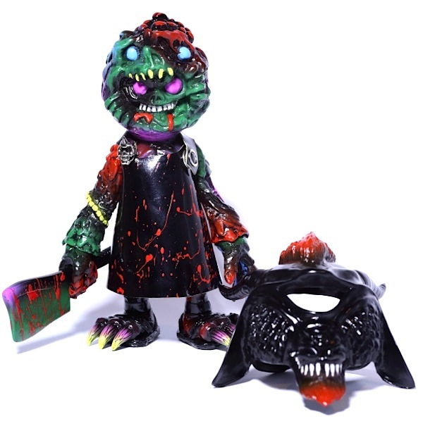 Celebrating their 4th Anniversary in style, MISHKA Tokyo have just revealed exclusive versions of both Cyco Ape and the MISHKA Boogie-Man! Originally teased here a couple of days back, the jaw-dropping Boogie has been cast in a black soft vinyl with green, red and purple sprays, coming complete with a custom blood splattered apron with pewter Cyco Simon detailing… Also cast in a black vinyl, Cyco Ape on the other hand has been given a full Nag-style workout, featuring a mix of neon blue and magenta sprays, a leopard print vest, studded wrist bands, plus the all important hand threaded hair. Touching down in the MISHKA Tokyo store next Thursday, March 20th, edition size and pricing on both figures is still to be confirmed…