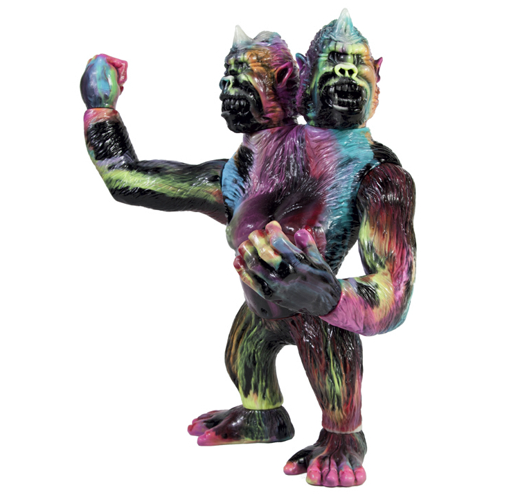 MISHKA have revealed that they will be releasing the latest Cyco Ape colourway in-store at Noon EST today (3/17)! Produced by none other than Grody Shogun, the towering 13″ tall monstrosity has been cast in a predominantly black 16 colour “tie dyed” marbled soft vinyl (no paint!) similar to the first run of Rotten Rexx at NYCC last October. Coming bagged and headed with an exclusive primate art print, pricing on the figure is still to be confirmed, but we’re guessing the beast is likely to come in at around $300 plus shipping…