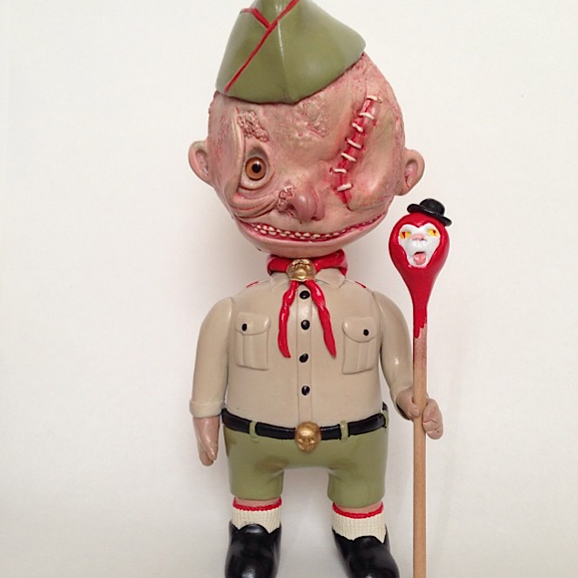 UPDATE// Uploaded mere minutes after our post went live, Double Parlour have just unveiled their second figure for release tomorrow- the jaw-dropping Boy Scout! Taking on an almost Madball-esque appearance with his array of scabs and stitches, the strangely endearing little guy has also been limited to just 5 pieces. Still no word on pricing at present, but we’re sure these will disappear quick regardless!