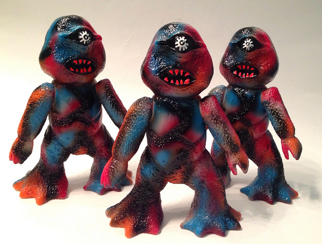 Blurble is the latest to take on SLAVExONE‘s cycloptic beast, proudly presenting the Gero “Destroy” Monster micro run! Standing at around 6.5″ tall, the crazy looking neo-kaiju has been cast up in an orange soft vinyl this time around, coming complete with black, GID white, red and blue camo-style sprays. Limited to a run of just 6 pieces (including a special one-off!), the figures will be touching down in the Blurble store on Thursday, March 3rd at 5pm PST, coming in at $75 with domestic shipping included and just $85 shipped worldwide…