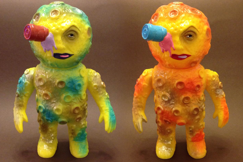 Teased here earlier in the week, Angel Abby‘s exclusive Cosmo Knight Alpha “MOON” sofubi has just touched down in-store! Produced by Target Earth, the latest version of the “Le Voyage dans la lune” inspired figure is up for grabs in 2 contrasting colorways; “Ocean”, coming cast in a yellow soft vinyl with aqua sprays and red rocket, and “Lava”, also coming in yellow, complete with orange sprays and blue rocket. Up for grabs in the Angel Abby store right here, the pair have been priced at $100 each plus shipping…