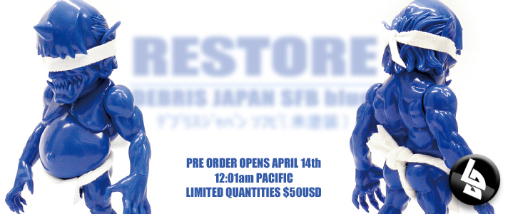 The guys over at Lulubell Toys are excited to announce another awesome release from RESTORE, the unpainted “SFB Blue” Debris Japan! Due to be making it’s debut at the Mintyfresh ToyCon booth this coming Saturday, a limited number have been held back for a pre-order release on the Lulubell store next Monday, April 14th at 12.01am PST, with the beautiful 7″ tall figure coming in at an unbelievable $50 each plus shipping (around $25 cheaper than the UK version!).