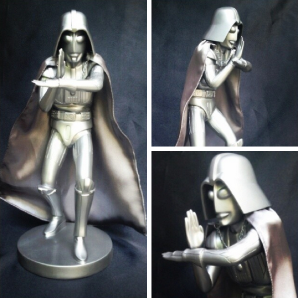 Joining the previously posted “Double Dark” Lord on Vacation, My Royal Ego’s Abel Octovan has just revealed yet another figure to receive an all-new colourway, the “Silver Space” LordUltra! A beautifully realised mash-up of the dark lord Darth Vader and iconic tokusatu character Ultraman, the originally sculpted piece stands at around 14″ tall, this time around coming in an all-over silver paint job complete with hand cut and trimmed silver cape. Limited to an edition of just 3 pieces, interested parties can find out more about the figure by e-mailing Octovan directly at abeloctovan@gmail.com…