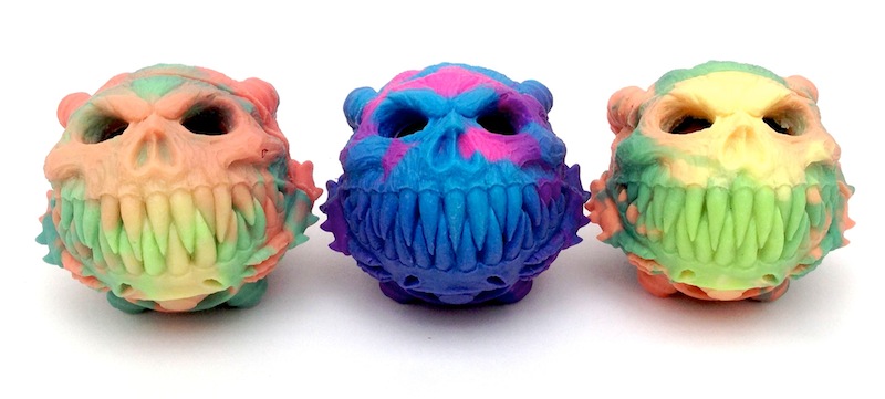 Whilst we’ve unfortunately had to cease regular posting as we get ready for ToyCon UK on Saturday (we’ll be back next week!), we do still have a few Tru:Tek/Disarticulator exclusives that we’ll be revealing over the next few days, the first of which coming in the form of these “Color Change” Madballs of Death! One of the last chances to bag this incredible design from Zectron, the 2″ ball has been cast up by Tru:Tek in a marbled mix of thermal color changing pigments, complete with matching “parasite” insert nestled inside. Limited to an edition of just 6 unique casts, these will be up for grabs at the Rampage Toys x Disarticulator ToyCon booth (#16), priced at £28 each…