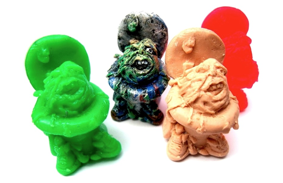 Yet another Disarticulator-tinged post today, as we bring you the latest release from Lee over at Bigmantoys… the “Street Trash” Toilet Guy! A loving tribute to the classic 1987 gross-out flick of the same name, the Monster in My Pocket style figure depicts one of the film’s many unfortunate “Viper” victims (a deadly liquid that causes the drinker to melt- messily!), standing at around 2″ from toe to toilet lid. Available in either neon green/pink rubber or flesh toned flexi-resin for $14, or just $21 for a full hand paint, limited supplies of Toilet Guy can be found in the Bigmantoys store right here…