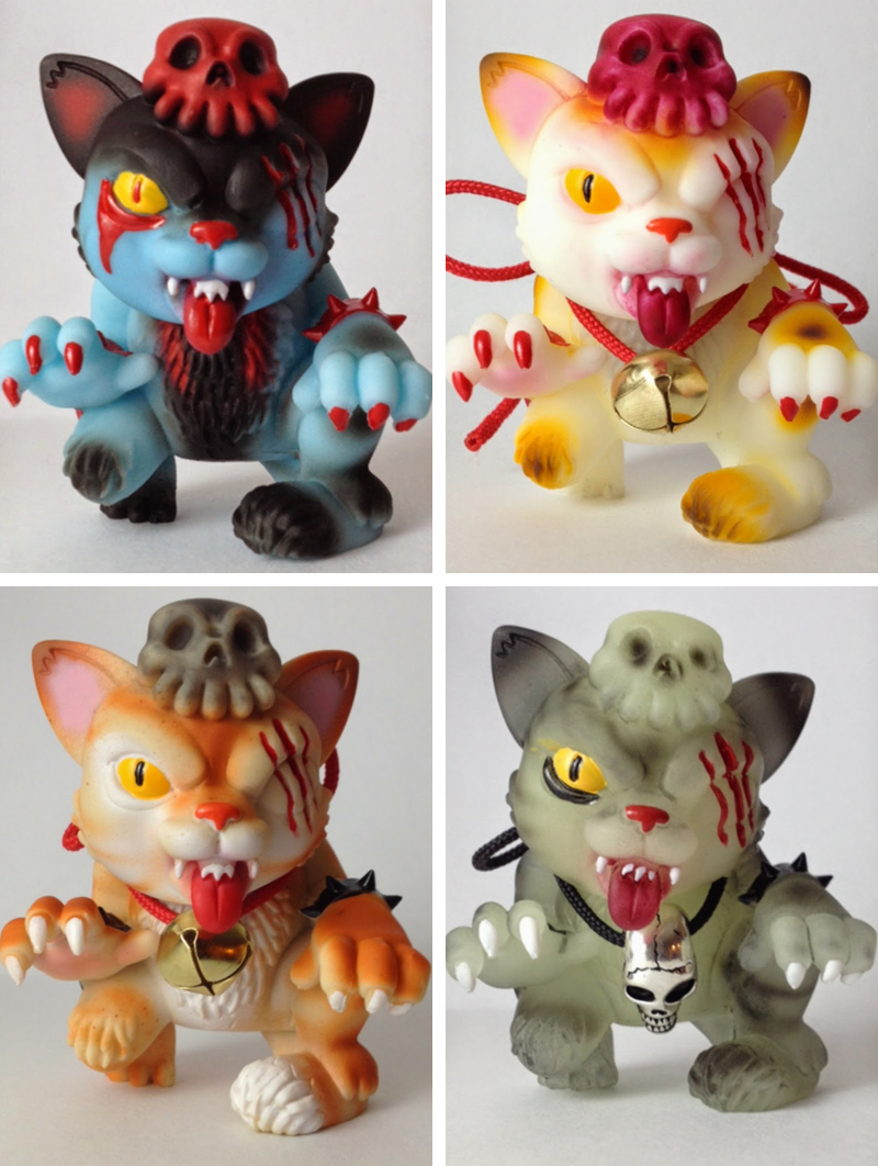 With the stunning Lilith figure tucked firmly under his belt, Johan Ulrich over at Death Cat Toys is proud to reveal his latest resin creation, the Death Cat mini figures! Based on DCT’s Bikkuriman-styled feline mascot, the disgruntled kitty has been designed and digitally sculpted by Johan, with resin casting once again in the hands of Dubose Art. Release details for the 3″ figures are still scarce at present, but a total of 4 different colour samples have been revealed so far (clockwise from top); Devilman, Not So Lucky, GID Grey and OG Orange Tabby, each coming hand sprayed by the artist with either a bell or skull collar accessory. Due to be making their first appearance at a TAG show in June, be sure to keep track of Johan’s IG feed here for full release over the coming weeks…