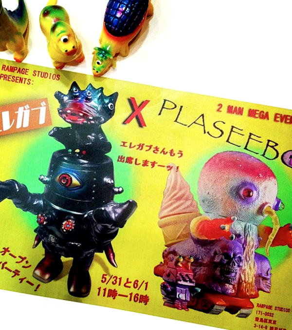 After a brief hiatus since the epic MVH x SHB show, Jon Malmstedt over at Rampage Studios has just revealed the gallery’s latest upcoming collaborative event, pitting Japan’s mighty Elegab against the US’ legendary Bob Conge aka Plaseebo! Opening it’s doors on Saturday, May 31st, the show is set to feature a number of cross-customs from both artists (including the INSANE pictured Kouzira Night Gamer!), as well as one-off customs and maybe even a few micro runs from Jon himself. Stay tuned for full figure reveals from all 3 artists, plus details of those all-important online sales as we get closer to the event…