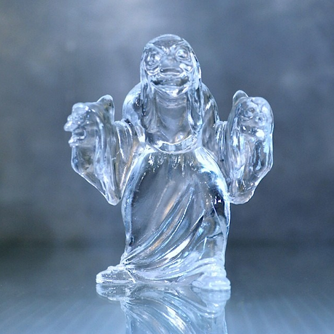 As if yesterday’s Muscle/Mask announcement wasn’t enough, Healeymade has just revealed that yet another piece will be heading to the store alongside the bootleg minis this week, proudly presenting the Infiltrator Witch! Marking a return to the popular “Toil & Trouble” custom bootleg, the figure has been kit-bashed from a vintage Snow White figurine, coming complete with two mini ‘witch head’ hands- a subtle reference to the 3 hags in the infamous play, Macbeth. Hand cast in a stunning crystal clear “stealth” resin, the 3″ figure will be available right here this Thursday, May 8th for just $30 plus shipping…