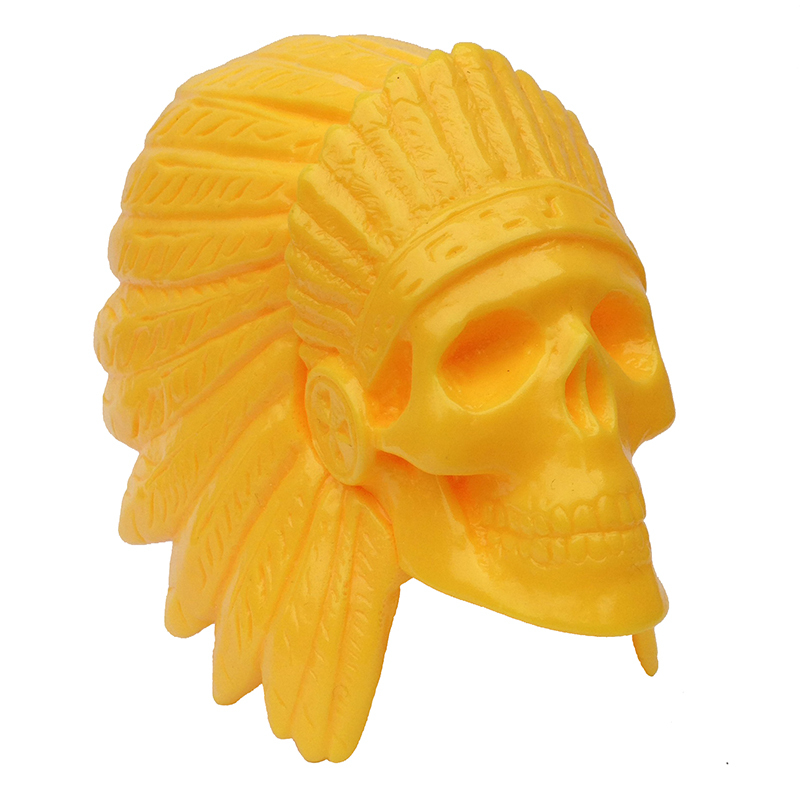 Wasting no time since the release of ScareCrowOven’s tee and toy set last week, the guys over at Scumbags & Superstars are proud to reveal that their Skull Chief sofubi is now up for grabs in an all-new unpainted colourway! Standing at around 4″ tall (a little larger than a baseball), the mascot head figure has been cast in a bright yellow vinyl this time around, coming in at just $55 each plus shipping. Available in strictly limited quantities, we suggest heading over to the S&S store right here to check them out before they’re all gone…