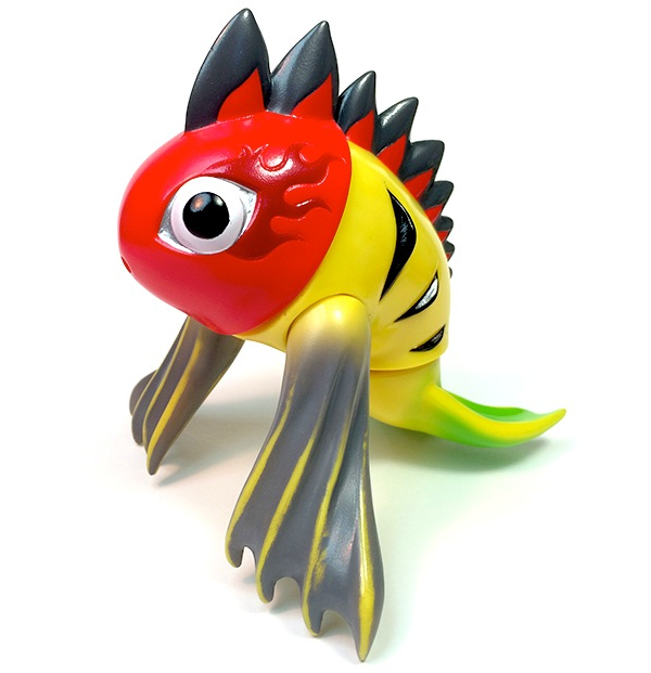 Having made it’s debut earlier in the month at Design Fiesta 39, Max Toy Co have just revealed that Teresa Chiba‘s Kibunadon is finally up for grabs in the West! Winner of last year’s Kaiju Gals competition, the beautiful 4.5″ tall, 5 part design was expertly sculpted by Makino-san of TTToys, coming cast in a yellow soft vinyl with red, black, grey, silver and green sprays for this first release. Priced at just $40 plus shipping, the little fishy is currently up for pre-order through the Max Toy store right here whilst stocks last…
