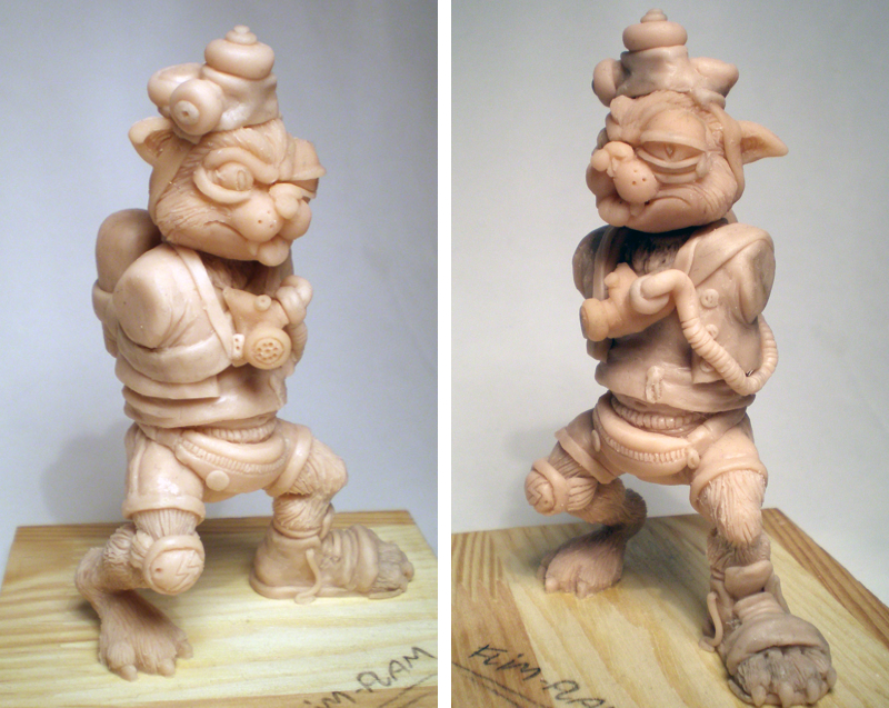 With the previously posted Sergei the Sturgeon now in the final stages of prototyping, Run Alexandersen aka Dr Death has wasted no time in getting started on the third figure in the ongoing Mutant Bastard action figure series, Flim Flam! A skateboarding cat that apparently suffers from severe cat allergy, the rather unfortunate feline has been crafted in Rune’s unmistakable early-90’s Playmates inspired style, standing just shy of 5.5″ and coming with a whole slew of ingenious comic touches- the snotty nose, dripping, fevered eye and fanny pouch particular favourites of ours! Due to head into production alongside Sergei courtesy of the chaps over at Goodleg Toys in the near future, interested parties can keep updated by giving the new Dr Death Facebook page a like right here