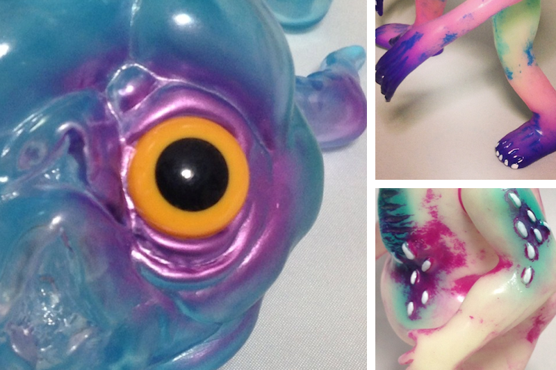 Ricky Wilson aka Velocitron has secured a 1 day license for Wonderfestival in July to produce another round of Hino Hideshi sofubi! Featuring all 3 previously released designs in brand spanking new colourways, from what we can gather from the teasers revealed so far, Beserk’s Guts baby will be coming in a clear blue vinyl with simple metallic purple sprays, whilst Hell Baby’s Hell Girl and Gaki have been produced in a glow vinyl, coming with multiple layers of neon sprays, rubs and hand painted detailing… Edition size and pricing are still to be confirmed at present, so be sure to keep a close eye on the Velocitron Instagram feed here for more details soon…