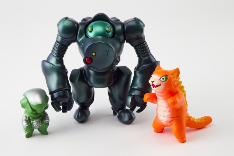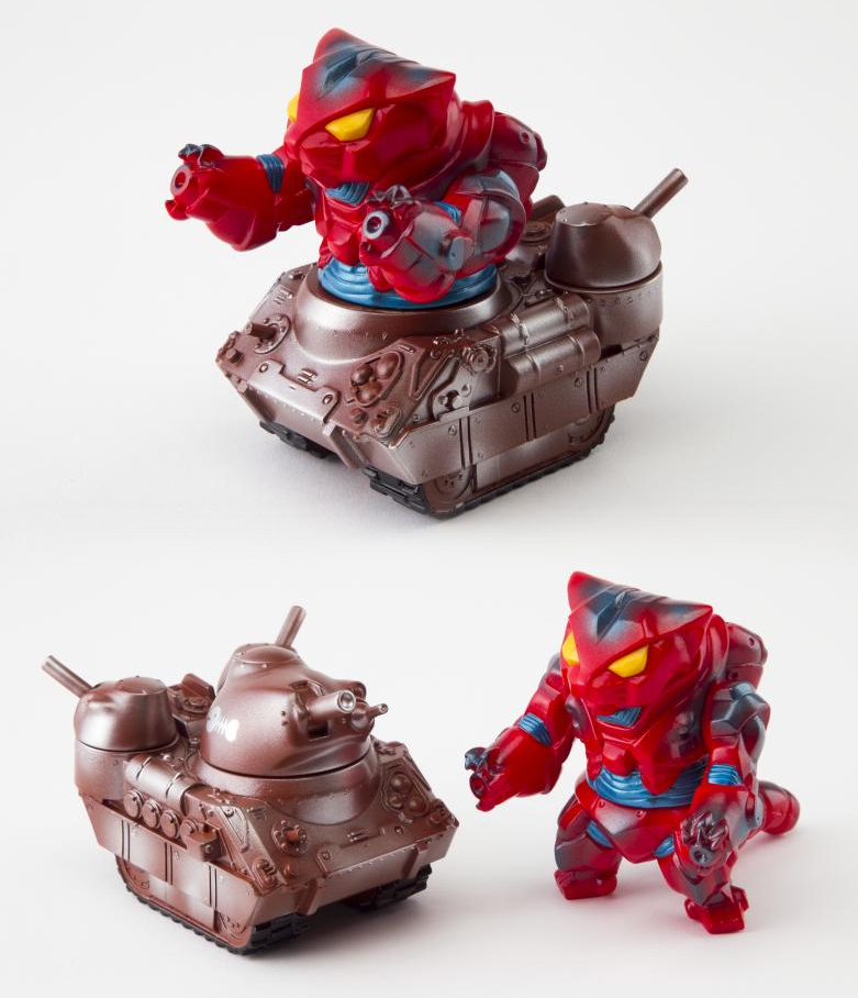 “Steel” Set A (above)- Originally making a limited appearance at the recent Gals + Makino-san exhibition last week, Set A consists of the recently released Mecha Nekoron Mk III in a red soft vinyl with metallic blue/yellow sprays, and the Kaiju Tank in brown vinyl with silver accents. Priced at just 8,000yen ($78) plus shipping, the set can be found in-store here.