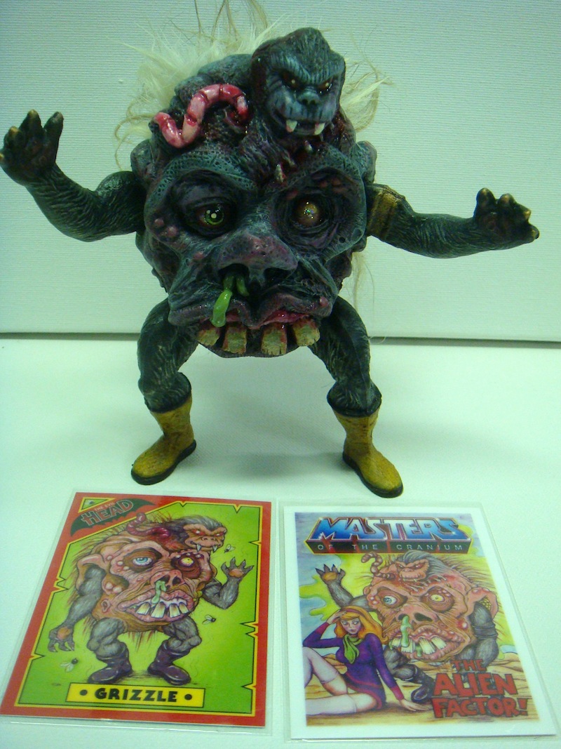 Originally revealed back in April, Joe Whiteford is proud to reveal that the first figure in his ongoing “Evil Head” series, the abominable Grizzle, is now up for grabs! A crazy infusion of all things 80’s (and gross!), including Weird Balls, He-Man and cult horror, the gruesome 5.5″ tall beast has been originally sculpted by the artist (save for the Grizzlor parts), coming cast in resin and finished in the artist’s unmistakeable mix of earthy colours, layered washes and a ton of fake fur. Whilst the first round of one-offs and limited runs have already sold out since their release just yesterday, Joe has just loaded the “Original Variant” edition for all those that missed out. Limited to a run of 16 (of which only 12 will be made available), this version has been painted in a Greyskull/Mumm Ra inspired greyish-green, coming packed with 2 custom collector cards playing homage to both Weird Balls and MOTU. Priced at $69 each plus shipping, the OG Grizzle’s can be found in the artist’s store right here… The first in a series of 4-5 figures planned, stay tuned for news on the next addition soon!