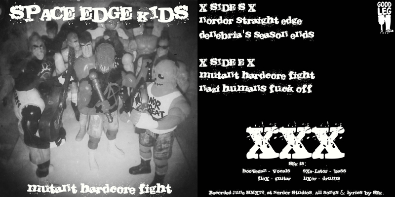 The chaps over at Goodleg Toys are proud to present Denebria’s most extreme Straight Edge Hardcore band, the SPACE EDGE KIDS, launching with their ass kicking debut 7”, MUTANT HARDCORE FIGHT! Featuring Hoovegan on vocals, SxE-Letor on bass, FloX on guitar and LiXor on drums, the quartet of made-up, punk-loving miscreants have been kit-bashed from both the “Boxing King” ECW knock off and a number of the NA of He-Man resin heads. Featuring 4 points of articulation, the 5.5″ figures have been hand cast in resin, with each said to have been painted “under the influence of the finest SxE Hardcore Punk music”for added authenticity! Currently available via preorder through the Goodleg Toys store here, Hoovegan, SxE-Letor and FloX can be yours for just $35 each, with LiXor, plus a (non-playble!) 7″ vinyl, completely free to anyone who bags all 3!