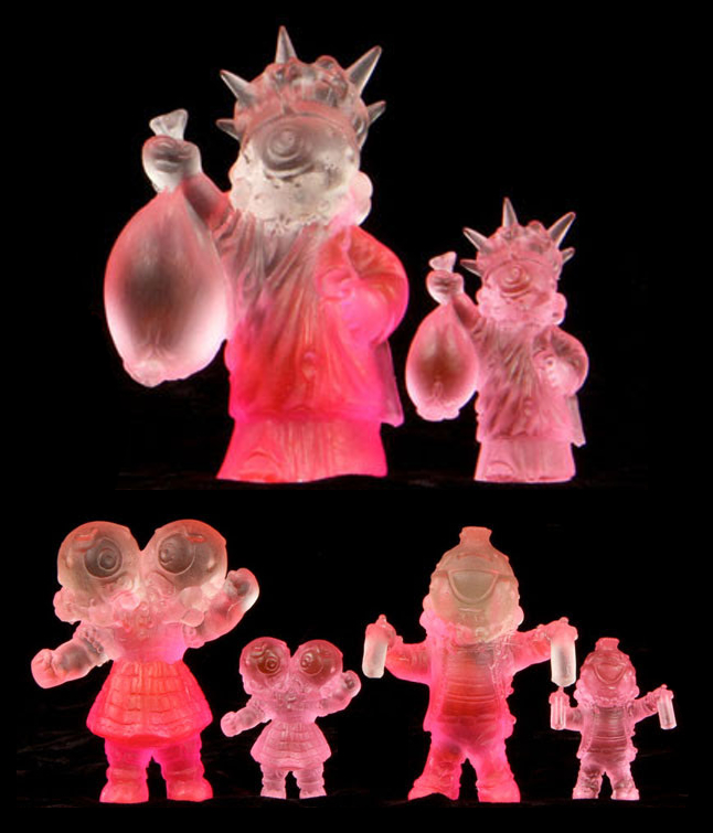 Joining a huge archival sale and new print release, Buff Monster has just unveiled that the Melty Misfit Cheap Toys will be making their debut in “Jumbo” form in-store today at 6pm EST! Featuring all 3 original designs, Double Heather, Graffiti Petey and Alice Island, the GPK inspired figures stand at 2.5″ tall each, around twice the original Cheap Toy size. Hand cast by Buff Monster in a swirled translucent resin for this first release, the Jumbo Melty Misfits will be dropping right here for $30 each plus shipping… In the NY area? They you may be interested to know that Buff Monster will be holding a physical sale at his new art studio on the Lower East Side ahead of the online release at 12pm-3pm today! Interested parties can send an email to info@buffmonster.com to grab the full address…