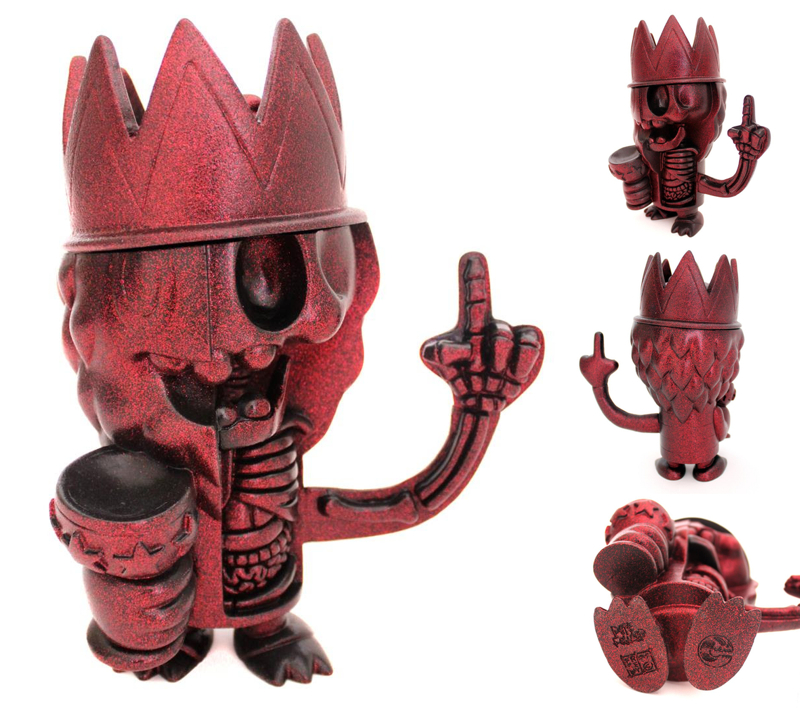 Celebrating the launch of the 4th Annual Designer Toy Awards, Jason Freeny has teamed up with organisers Clutter Magazine for the debut of the Dissected Toy Prince resin figure in a gorgeous “Ruby Dust” colourway! Originally designed by Pete Fowler for the DTA trophies, the figure has been re-sculpted in Freeny’s signature half-skeletal style, standing at around 8″ tall and coming rotocast in a glittering red resin with black hues. Limited to an edition of only 30 pieces worldwide, the figure will be touching down in the Clutter store this Friday, July 11th at Noon EST for $125 each, with 100% of the proceeds from the sale going towards the the funding of the Designer Toy Awards held during NYCC weekend…