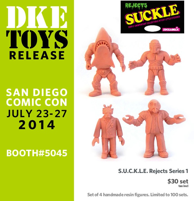 Continuing the keshi-themed SDCC reveals today, DKE Toys are proud to present their latest collaboration with The Super Sucklord, the S.U.C.K.L.E Rejects Series 1 set! Created in a similar vein to the artist’s annual “Rejects” release, the pack features a total of 4 frankenstein designs, each mashed up from figures across both series 1 and 1.5 and coming recast in a flesh toned resin. Limited to a run of just 100 sets priced at $30 each, the S.U.C.K.L.E Rejects will be up for grabs at the DKE booth (#5045) once the con doors open on July 23rd…
