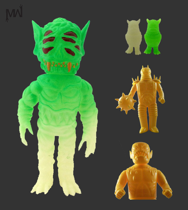 “Steel City” Galaxy People- Monster Worship will be teaming up with their friends in Japan, Galaxy People, to offer a three piece set featuring the heroes of the GP universe; Helios, The Grappler and Meklops. Cast in yellow japanese soft vinyl, with black and silver paint accents, MW’s signature colorway, the figures have been priced at $25 and $75 for the set.