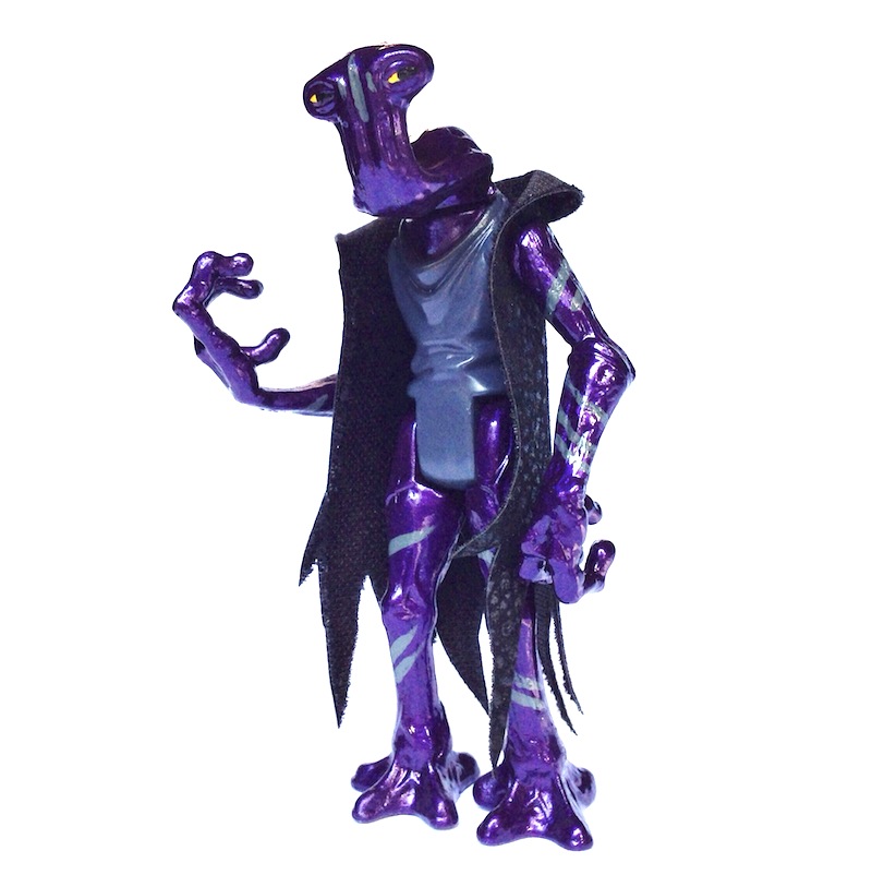 Credenda Studios return with their first ever bagged release, the awesome HammerTongue custom bootleg! Meticulously kit-bashed from an assortment of undisclosed vintage action figures, this intergalactic kingpin stands at around 3.75″ of hand cast, non-articulated resin, coming hand painted in a gorgeous mix of metallic purple/silver and finished with a hand cut suede robe. Limited to an edition of 25 pieces, each coming bagged with a pulp-style header courtesy of Reneone Lab, HammerTongue will be touching down in the Credenda Studios store this coming Sunday, August 3rd at Noon MST for just $45 each…