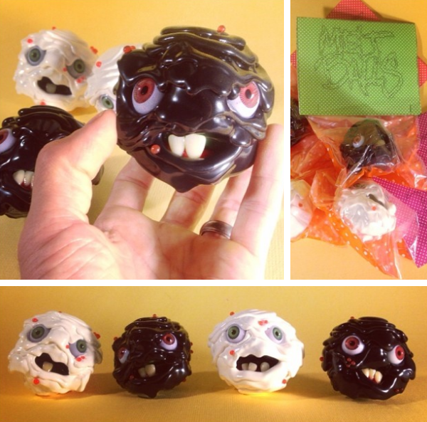 Continuing our recent swathe of Madball-related posts, Melt Monster maestro Honkey Lips has just revealed his latest batch of custom figures, the Melt Balls! Coming in at around the same scale as AMToys’ original gross-out line, the 3″ wide balls have each been treated to the artist’s signature “melt” finish, coming complete with super-creepy eye inserts, fake teeth and red boils fit to burst! Limited to a run of just 5 pieces, 3 in black and 2 in white, the Melt Balls will be touching down alongside a whole host of other new melty creations in the HL store this Friday, August 8th at 6pm PST, priced at around $30 a piece…
