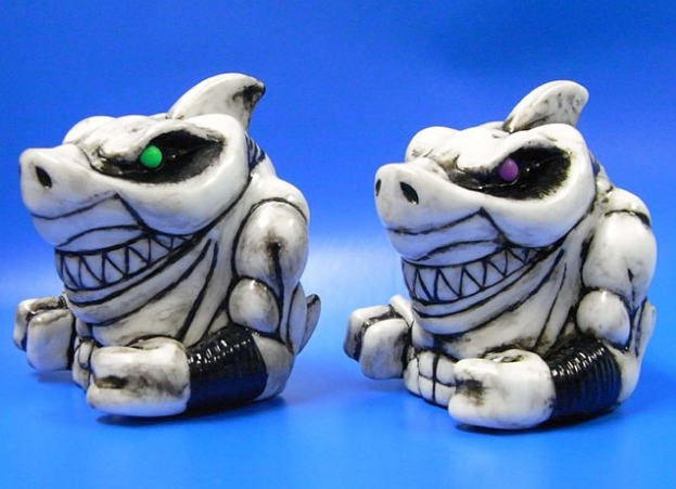 The guys over at Shamrock Arrow have just revealed that they will be resurrecting their first ever sofubi figure, the Street Sharks-inspired “Fang”, for an exclusive colourway at this year’s Amazing Model Expo-Japan! Cast in an ivory/bone coloured soft vinyl, the 3″ tall Ma-Ba Zombie style torso has been treated to a detail hugging black rub complete with hand painted detailing and one-off colour eye inserts. Available at the Shamrock Arrow AMEJ booth this Sunday, August 17th alongside figures from Astro Zombies, Pop Soda and Anookata for around 3,000yen ($29) each… Here’s hoping we finally see a few of these in the West now they’ve made a comeback!