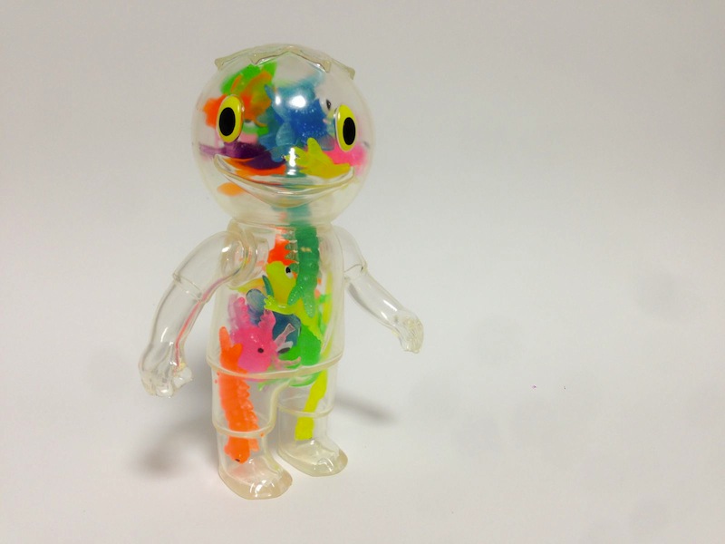 Hot off the heals of the recent “Summer Vacation” Sametan release, Koji Harmon over at Comet Debris has just revealed that his Kappa Shonen figure is set to receive the same summery treatment this weekend! Produced in a crystal clear soft vinyl with hand painted yellow and black eyes, the 5″ tall figure has been filled with a bunch of bright, colorful goldfish and summer insects. On sale in the CD store this Saturday, August 16th at 9pm PST alongside a limited batch of unpainted clears, both will be available in a set of two so you can buy with a friend and save on shipping! Pricing on these is still TBC…