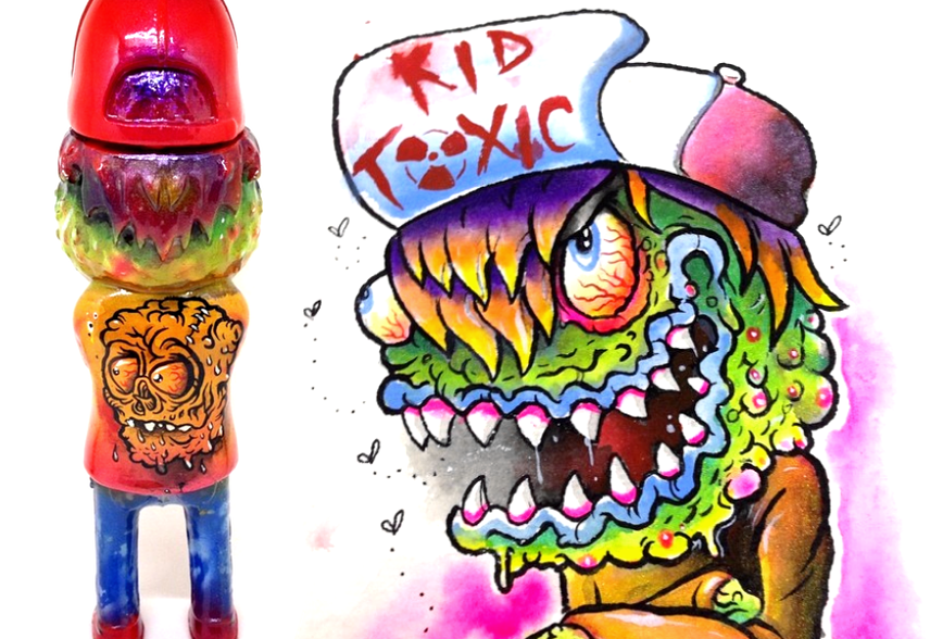Celebrating his Kid Toxic figure’s recent transition from resin to sofubi, Blurble has just revealed that he will be teaming up with tattoo artist-come-toy customiser Evil Dave for a special micro run! Designed by Blurble, digitally sculpted by iamscumbag and produced by Lulubell Toys in Japan using the finest soft vinyl, the 6″ tall figures will each be treated to Dave’s instantly recognisable mix of layered sprays, mottled brush work and insane one-off illustrations. We’re still awaiting confirmation on edition size, pricing and of course a solid release date, so be sure to keep checking back for the full lowdown on these must-have figures soon…