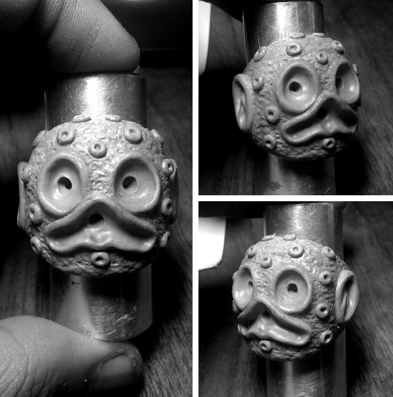 Today we can exclusively reveal an all-new project from the twisted alter ego of our editor Tru:Tek, Deadman… horror ‘zine, apparel and toy brand, GORY HOLE! Set to debut at NYCC ’14 with a limited sample run of issue “Zero”, alongside prints, t-shirts and other assorted merc, the first product to get a full official reveal comes in the form of the Ooze-It inspired “Monster on Your Finger” ring. The first in a series of jewellery inspired by classic bootleg monster toys, the ring – sculpted and produced in pewter by hugely talented Indonesian artist Baindots – takes on the form of the classic Ooze-It copy, the Cosmos Alien, rather than the original 70’s doll. Due to touch down at the Rampage Toys x Tru:Tek NYCC booth in October, details with regards to packaging, pricing, edition size and online availability will be unveiled closer to the event… You can expect more exclusive news on Gory Hole in the near future too!