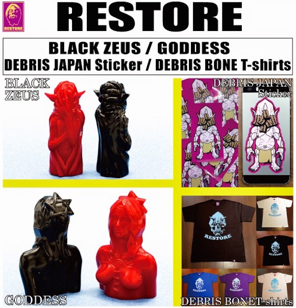 RESTORE’s Black Zeus & Goddess- Up for preorder in-store right now are the latest mini figures from RESTORE, Black Zeus and the Goddess. Originally debuting at Wondefestival a few weeks back, a limited supply of both figures in either black or red can be yours for just $5 each (limit of 1 per person). On top of the figures, there are also a number of different RESTORE Bone t-shirts up for grabs too, so be sure to head on over and check them out before they inevitably disappear!