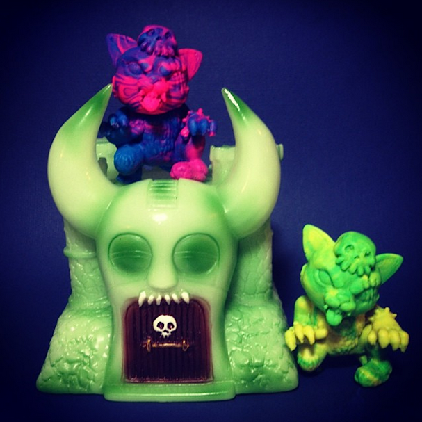 Originally teased here a few weeks back, DeathCat Toys x Nerdone‘s NYCC exclusive “Nekos in My Pocket” playset has finally been revealed in full! As hinted at in our original post, this new version is set to follow the same template as the original release, coming complete with Nerdone’s M.O.T.U.L.O.S castle cast in a GID sofubi and hand sprayed by Ulrich, as well as 2 DeathCat keshi cast in a marbled black light reactive rubber courtesy of Dubose Art. Limited to a run of 20 this time around, the GID “Nekos in My Pocket” playsets will be up for grabs at the Monster Island x GNOSIS NYCC booth (#402) next month for an estimated $80 each…