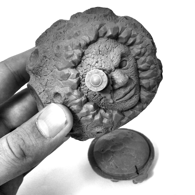 With NYCC just a couple of weeks away now, our very own Disarticulators have decided to reveal one of the many projects they’ll have on show at the event… the long-awaited sofubi Oozeball! A follow-up to last years hugely popular keshi-ball release, the DA’s Tru:Tek has completely redesigned the figure from the ground up for the new medium, opting for a more organic, Ooze-It like face, paper clay-style textures and the pièce de résistance… a hidden face inspired by Georges Méliès iconic 1902 silent movie, Le Voyage dans la Lune! Beautifully sculpted by none other than Zectron, the 2-part design has been upscaled from the original 2″ diameter to little over 3″- making it both more in-keeping with the classic Madball scale, and, more interestingly, compatible with a wide variety of mid-sized kaiju with the base removed (see pic below)… Due to be produced in soft vinyl by Rampage Toys soon after NYCC, the guys will be offering up an open pre-order at the event, as well as a super-limited batch of hard resin protos. Stay tuned for the full lowdown – including details of the first online release – early next week…
