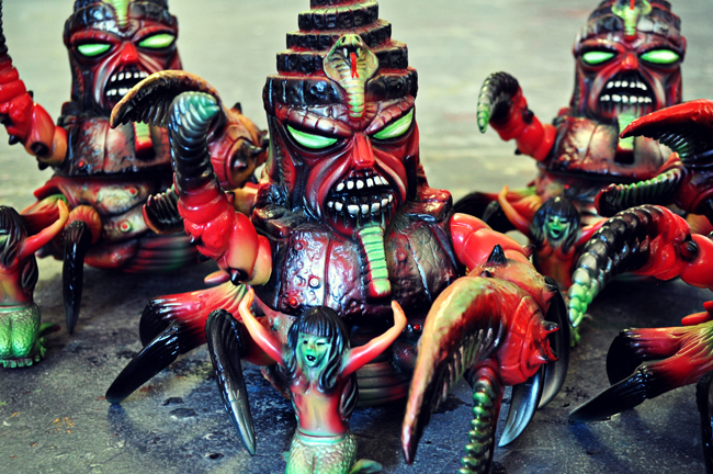 The mighty Skinner has taken on Paul Kaiju‘s King Jinx for a special “Cold Lemurian Code Jinx” micro-run! Produced in what appears to be a red soft vinyl this time around, the towering 10″ tall figure has been treated to a number of lime green, black and silver V-Color sprays, coming complete with matching “Screaming Siren” omake mini. Limited to a batch of just 5 pieces, the Code Lemurian Code Jinx’s will be creeping onto the Critical Hit store this Friday, October 3rd at Noon PST, coming in at $400 each plus shipping…