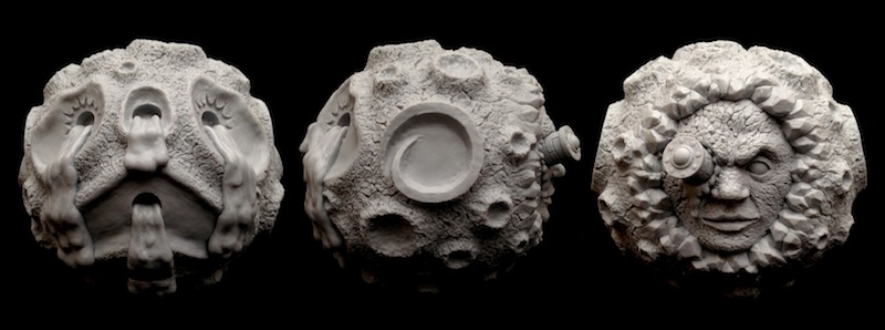 Oozeball Resin Prototype: It’s finally here… the long awaited sofubi Oozeball! A follow-up to last years hugely popular keshi-ball release, the DA’s Tru:Tek has completely redesigned the figure from the ground up for the new medium, opting for a more organic, Ooze-It like face, paper clay-style textures and the pièce de résistance… a hidden face inspired by Georges Méliès iconic 1902 silent movie, Le Voyage dans la Lune! Beautifully sculpted by none other than Zectron, the 2-part design has been upscaled from the original 2″ diameter to little over 3″- making it both more in-keeping with the classic Madball scale, and, more interestingly, compatible with a wide variety of mid-sized kaiju with the base removed…