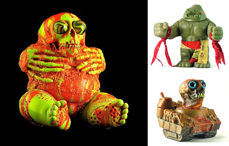 Blue Eyed Skullo Tank// Mashing up Max Toy Co’s Kaiju Tank with a Plaseebo Skullo resin head, the piece stands at around 4″x4″, coming with a number of rusty, weathered washes, sprays and hand painted detailing. Once again, the figure comes signed and dated by the artist.