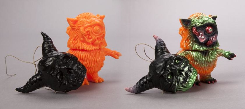 Yep, yet another Halloween themed release this week, as Devils Head Productions team up with Splurrt for a festive second round of Masked Alavaka Digglers! This time coming cast in an orange soft vinyl with removable black mask, the 4″ tall Digglers are set to remain blank for the majority of the release, with a super-limited batch of painted chases from both Splurrt and DHP’s Toby Dutkiewicz (pictured) inserted randomly into the run. To be sold through the Splurrt store this time around, expect the little guys to touch down this coming Thursday, October 31st at Noon EST for around $60 each (TBC)…