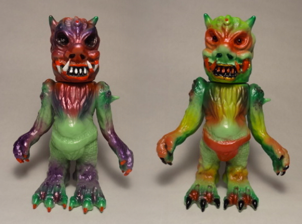 As if the recent news of his upcoming Designer Con 2014 release wasn’t enough, Shigeo Endo over at Bukimi Blasters has just revealed that he will be dropping 2 new micro runs of his ever popular Evil Demon online this week! Entitled “Anger” and “Drunk”, both versions of the 5.5″ figure have been cast in a light green soft vinyl, with the former receiving purple and metallic sprays, and the later, a mix of yellow, orange and green. Limited to runs of just 5 this time around, the Anger and Drunk Evil Demons will be up for grabs in the Bukimi Blasters store this Friday, October 31st for $120 each plus shipping. Available for just a one hour period, we suggest setting your alarms for these to avoid disappointment!