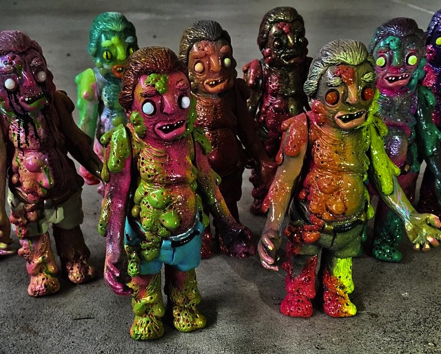 Up and coming toy artist Selfishlittle is proud to reveal that his debut figure Mr Canker is set to return today for a special Halloween release! Inspired by cult gross-out flicks such as Street Trash and Toxic Avenger, the beautifully sculpted slab of resin sludge stands at around 5.5″, coming with magnetic articulation in the arms. Limited to a batch of 5 one-off hand painted figures for the release, the Halloween Mr Cankers will be touching down in the Selfishlittle store today (10/31) at 4pm EST for just $45 each plus shipping… Anyone heading to DCon next week will be glad to know that another batch will also be available via the Lulubell Toys booth- stay tuned for more on these soon!